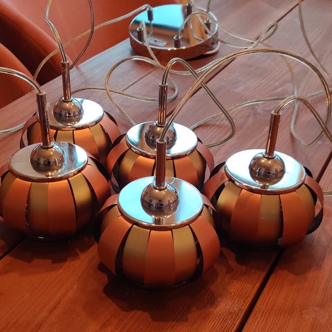 Klyngepedel inkl. baldakin inkl. 3 store pærer. Nypris lampe 525kr. Nypris pærer 400kr