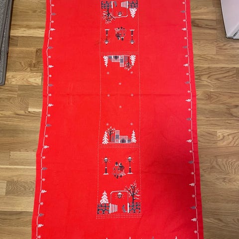 Juledug, håndbroderet juledug, juleløber, håndbroderet juleløber. Julepynt