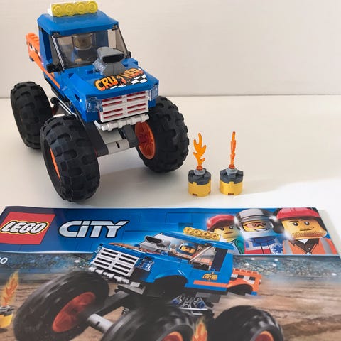 LEGO Racers Monstertruck legetøj i blå og gul farve. Modellen har store hjul og er designet til børn. Inkluderer original emballage. Egnet til samling eller leg.