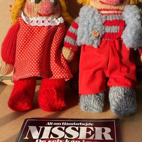 Fire søde små nissebørn i forskellige kostumer, Alle har samme størrelse.