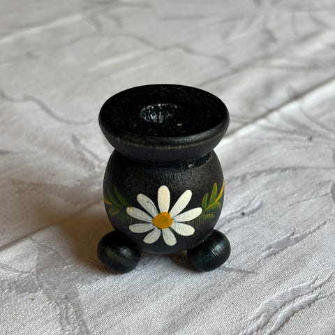 Det bliver næsten ikke mere svensk! Stor kuglelysestage i keramik med de karakteristiske bemalinger i almuestil. Kan bruges til både kronelys og til bloklys op til Ø 6 cm. Højde ca. 15,5 cm. Står nærmest som ny.