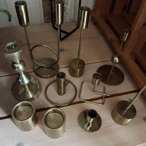 Yndig lysestage i guldfarvet metal.