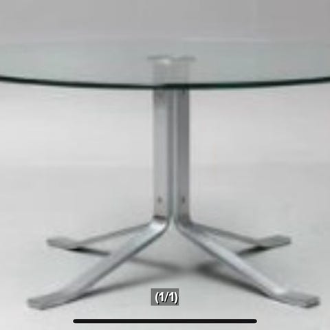 Glasbord, Poul M. Volther, glas, Ø 90 cm. h: 45, cm. Poul M. Volther. 'Corona' sofabord. Udført med firpas stel af børstet stål, plade i hærdet glas.