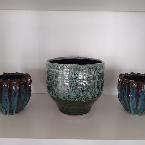 Ser ud som om de er mundblæste i bunden. De har næsten samme limegrønne farve.. pris for begge