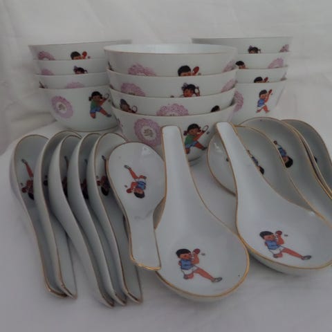 7 SMUKKE KINESISKE SKÅLE & 5 SKEER