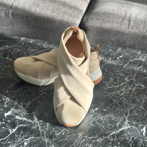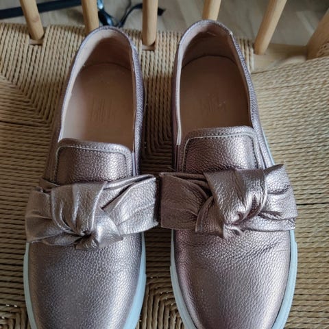 Helt nye smarte billi bi damesko str 40 i sort læder, smart elastik-rem hen over foden og hvid kant på sålen.