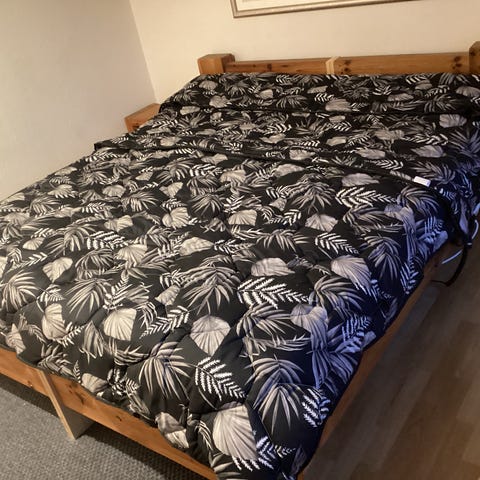 Dobbelseng med ren madras, 140 cm bred og ca 40 cm høj. Aarhus området.