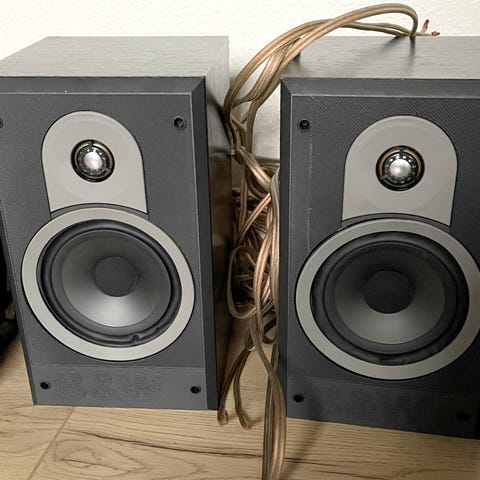 Der er små buler i diskanten på begge højttalere, men det påvirker ikke lyden og de fungerer som de skal.