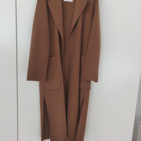 Sort frakke til kvinder i størrelse 36. Frakken er enkel i designet og har en elegant fremtoning, er figursyet med knaplukning foran og lommer på begge sider. Material er i en rigtig god kvalitet, bemærk de smukke indsnit. Frakken er i en virkelig fin stand, dog har den et lille tryk foran, og en lille farveændring inde i foret ses ikke i brug, og tænker at trykket måske forsvinder når den kommer i brug. Virkelig flot frakke, der kan holde en varm nypris var 3200 kr.