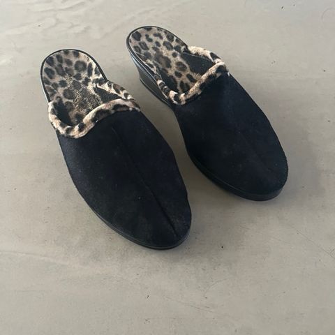 Hjemmesko, str. 36, Lyse bløde futter med guldtryk, aldrig brugt, str. S, Aladdin facon, ligger i silkepose, Friis & Co.