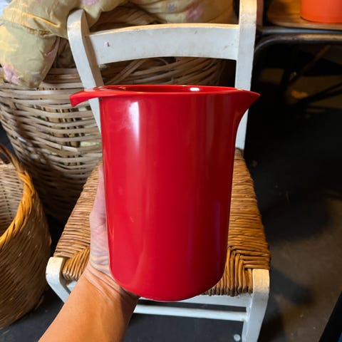 Litermål , Rosti, Kande, med tætsluttende låg, der kan drejes, så der lukkes / åbnes for hældetud. Højde 20 cm.