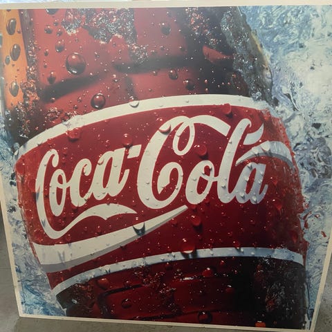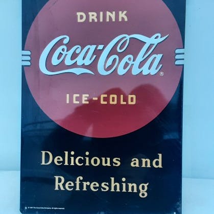 Retro Coca cola skilt der viser coca cola flaskernes evolution