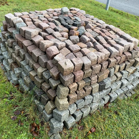 Ca. 750 stk. De har samme lysegrå farve. Billedet snyder da en balje sten er våde.