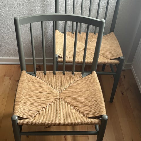 Har dem som ekstra siddepladser til mit lille spisebord. De er dog aldrig blevet brugt og de optager lidt for megen plads i min lille stue.