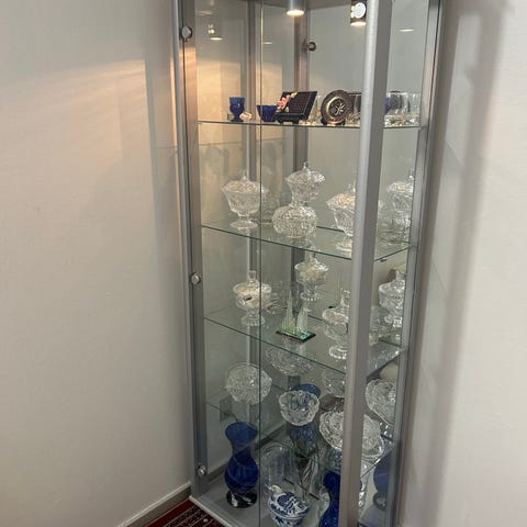 Nyt og ubrugt,dog mangler skabet glas i H side,2 af felterne,og hylder.