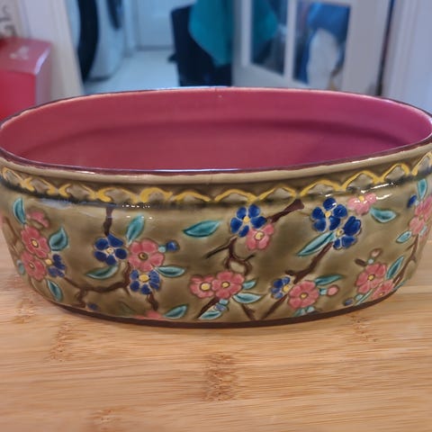 Lille lerskål med mønster. Håndmalet. God stand.