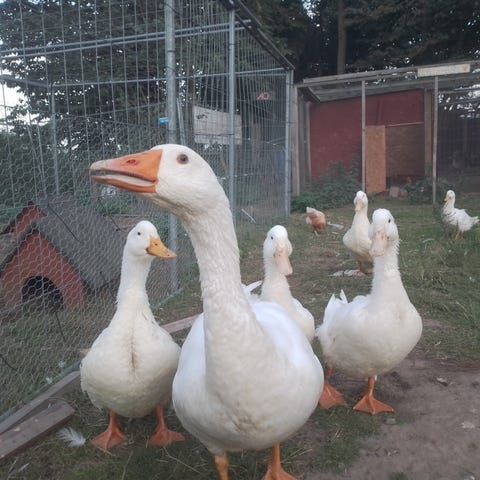 Store flotte hvide gæs. Sælges samlet. Tror der er begge køn. Vant til at blive håndteret.