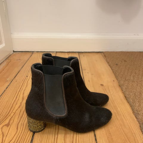 Støvler, str. 39, Stine Goya, Sort, Læder, Næsten som ny, Lille i str kort hæl men som løfter og giver et elegant look til det sorte læder med guld dots