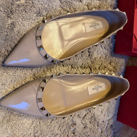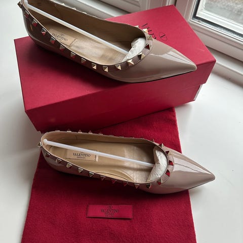 Valentino Garavani rockstud strap ballerina i str. 39,5. Min mening er at de er store i størrelsen, fitter formentlig en str. 40 (jeg er selv 41)