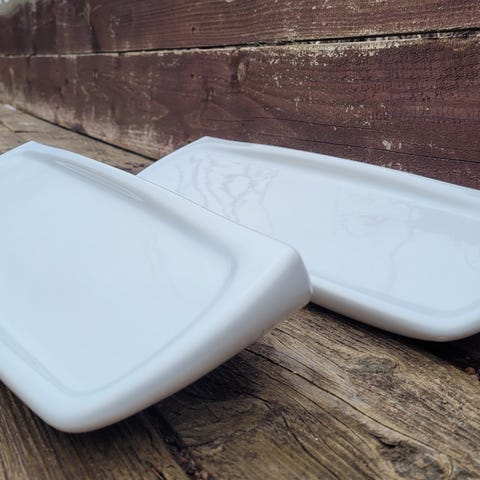 Virkelig fin hvid keramisk væghylde med rektangulært design. Hylden har en glat overflade og monteringshuller på bagsiden til ophængning.