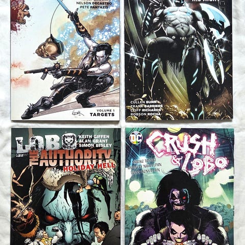 To 90’er tegneserier. Lobo ‘Den sidste Czarnianer' fra DC Comics og ‘Extreme Action #2’ der indeholder Lobo, Masken, Pia Zawa, Andrew Vachss og Predator. Begge blade er på dansk.