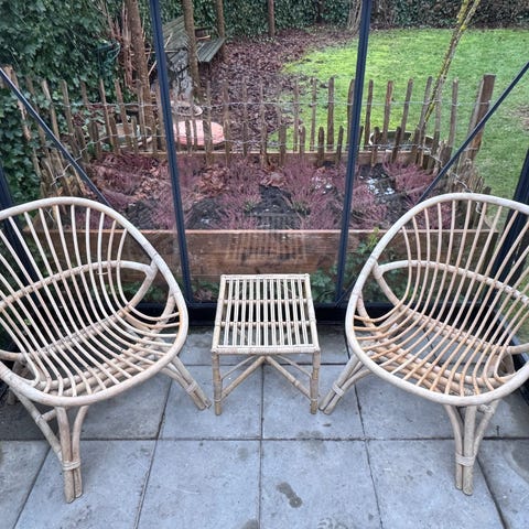 De flotteste rotting stole (2 stk.) og bambusbord sælges. Brugt på vores piges værelse, så sparsomt anvendt og fremstår i flot stand. 1 år gammelt, købt fra nyt til 399,- per den.