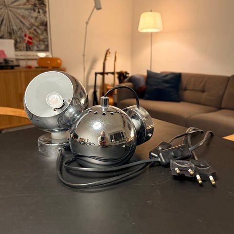 Ball væglampe i Glossy Chrome med diskrete transparent ledning med afbryder.