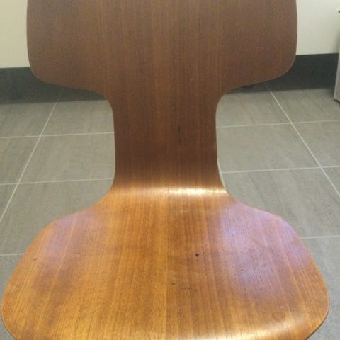 Arne Jacobsen, Børne barne stol, Gammel Arne Jacobsen børnestol fra 60’ , barnestol i formbøjet fineret teaktræ, T-stol sælges. Kan sendes.