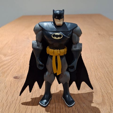 Hasbro 1996 Batman Batwing og Batboat legetøj i sort farve. Fremstillet i plastmateriale. Samlet sæt består af to fartøjer med detaljerede design, egnet til samling eller leg.