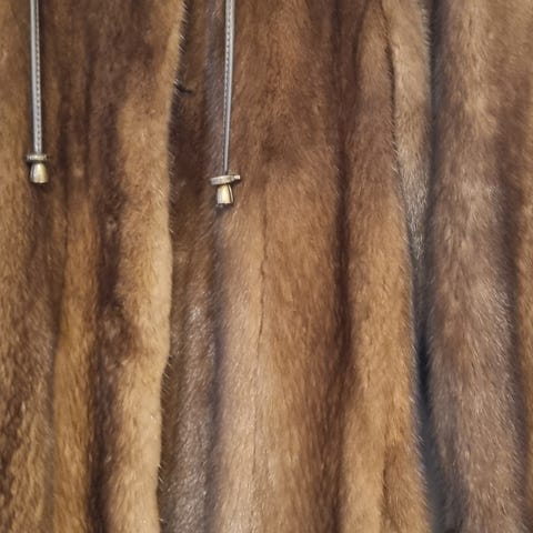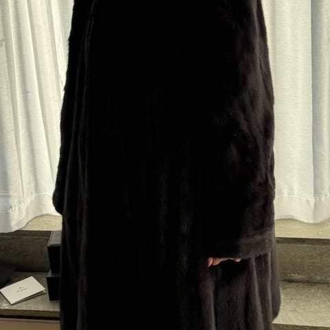 Elegant og varm brun minkpels i fantastisk stand. Fremstillet af ranchede mink fra SAGA – kendt for deres luksuriøse kvalitet.