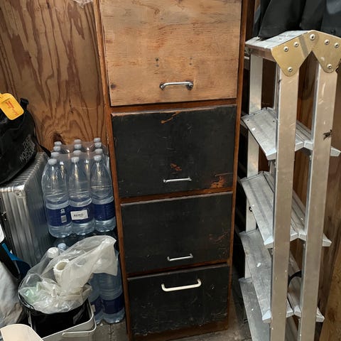 Arkivskab fra Ehapa i grålakeret metal,4 skuffer med patineret messinggreb.