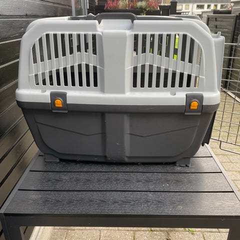 Skudo Classic transportbur til kæledyr i beige og grå farve. Buret er lavet af holdbart plastmateriale og har ventilationsåbninger samt sikker låsemekanisme. Medfølgende er et sort tæppe fra Rollmat, som beskyttelse af bilen, når hunden selv hopper op i bilen og ind i buret. Transportburet er velegnet til små til mellemstore kæledyr på str. af en alm Dansk svansk gårdhund på 7-10 kg. Transportburet sendes ikke og skal afhentes ved døren på adressen. Tager kun mod Mobilpay.