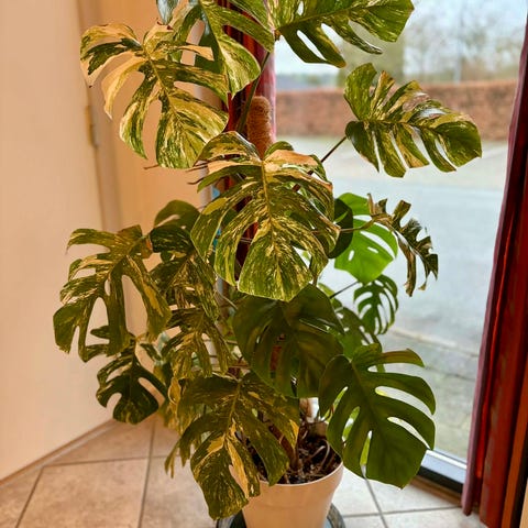 Jeg sælger en stor sammenplantning af Monstera Albo med smuk variation. 4-5 planter i potten og plantet sammen for cirka 4-6 mdr. siden.