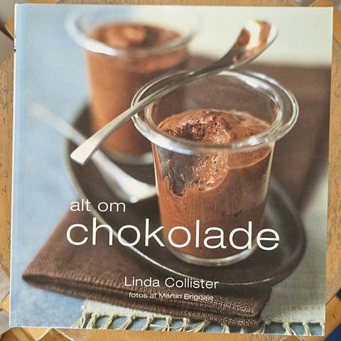 Chokoladebar bog med opskrifter og billeder af forskellige chokoladetyper og chokoladestykker. Indeholder detaljerede instruktioner til fremstilling af chokoladeprodukter. Materiale: Papir. Sprog: Dansk.