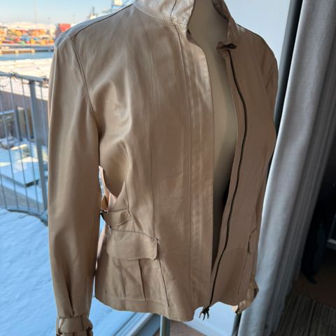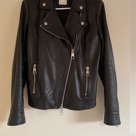 Jakken er lavet af blødt læder med en minimalistisk stil og klassisk krave.,Afhentes i:,Røde Kors Glostrup (161),Bemærk at mail, chat og beskeder ikke besvares, og varen skal købes på knappen "Gå til varen"