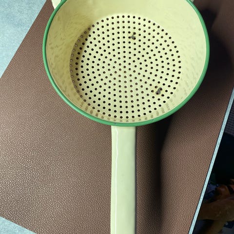Dørslag i Keramik med 2 øre ( lille afslag på det ene øre) Ø: Ca 30 cm ,Afhentes i:,Røde Kors Bellinge (461),Bemærk at mail, chat og beskeder ikke besvares, og varen skal købes på knappen "Gå til varen"