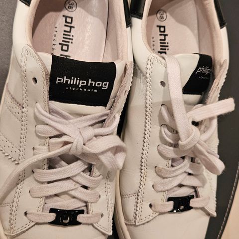 Sneakers, str. 41, Philip Hog, Hvid rød, Skind, God men brugt, Hermed et par fede sneakers fra Philip Hog Stockholm. Overall leather. De er altså ret fede. Få dem billigt her. Ses ikke ofte i denne model. Se mine øvrige annoncer for mange spændende ting