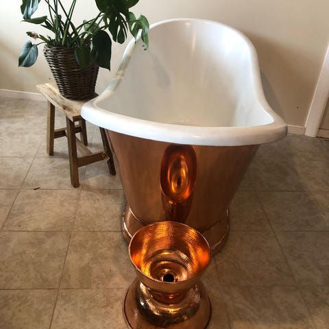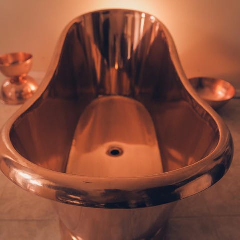 Æggeformet sten badekar. Helt nyt. Lidt støvet. Overskud fra byggeprojekt.