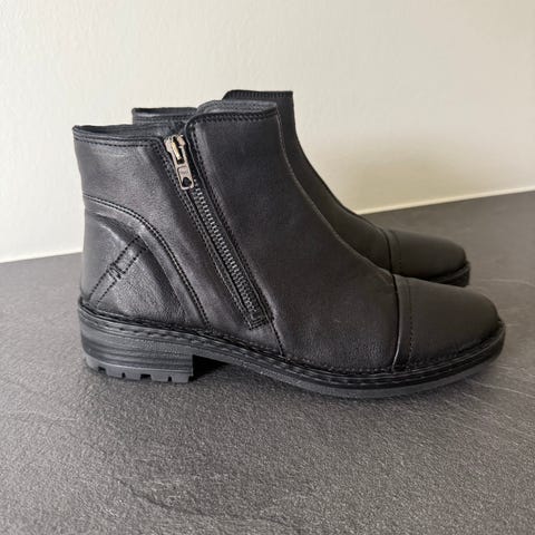 Sort LÆKKER kort støvle i skind med lynlås i begge sider så de er nemme at få af og på
