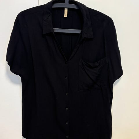 SoL Design kvindebluse i sort farve, størrelse 50. Fremstillet af 100% viskose. Blusen har lange ærmer og en åben front uden knapper eller lynlås. Materialet er let og velegnet til dagligt brug. Vi sender gerne til DAO pakkeshop.