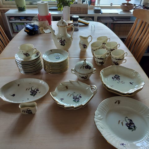 Sættet - både bord, kiste og porcelæn - er ubrugt og fremstår uden brugsspor.