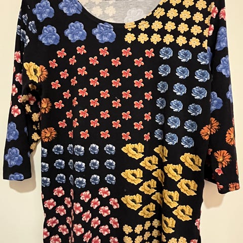 Cream Multifarvet Bluse i størrelse XL til kvinder. Blusen har et mønstret design med flere farver og en V-udskæring med sort kant. Viscose.