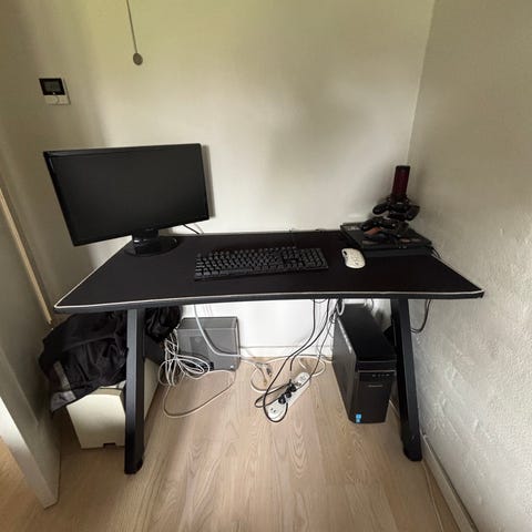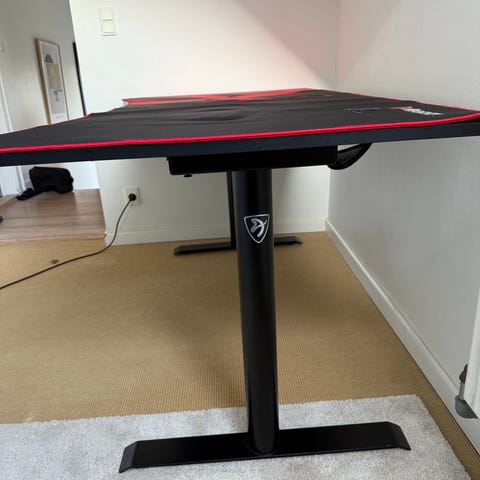 Stort sort gamerbord dog er det store underlag ikke med. Det kan tilkøbes i butik. Hent bordet på en gård ved Lundby.