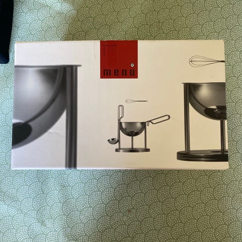 Danish Steel House sauce/ chokolade varmer i udsøgt design af Bent Falk, med både piskeris og øseske.