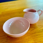 Yndigt lille sukker/fløde sæt i fin rosa farve.
