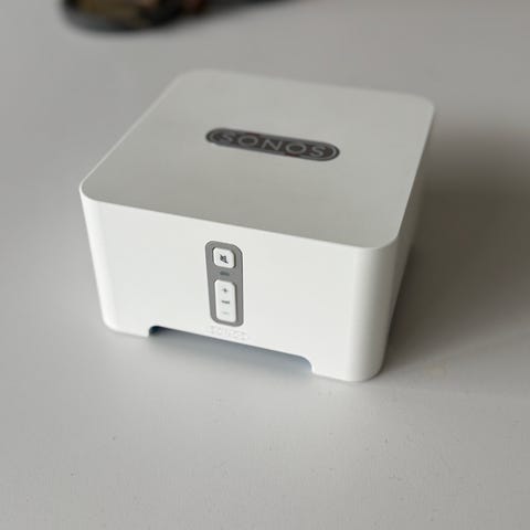Sonos Port Musikstreaming-enhed i sort. Enheden fungerer som en bro mellem traditionelle lydsystemer og Sonos trådløse netværk, hvilket muliggør streaming af musik via Wi-Fi. Udstyret med analoge og digitale lydudgange samt netværksforbindelse for integration i eksisterende lydopsætninger.