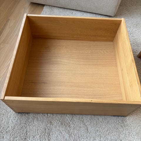 Træskuffe med metalramme og hjul