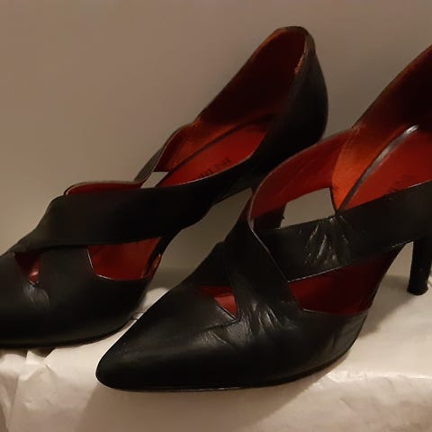 Stiletter, str. 38, YSL, Marineblå, Skind, Næsten som ny, 5 cm hæl. Yves Saint Laurent. Forsålede. Spænde og pynt i mat guld/messing