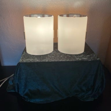 Retro, badeværelses væg lampe beige/hvid, til 2 E14 kærte pære, H:7,5 cm B:29 cm D:9,0 cm.