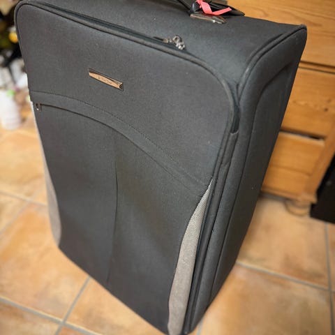 Flot jadegrøn kuffert med 2 hjul. Nærmest helt ubrugt. Str. 78 x 50x 17.,.
